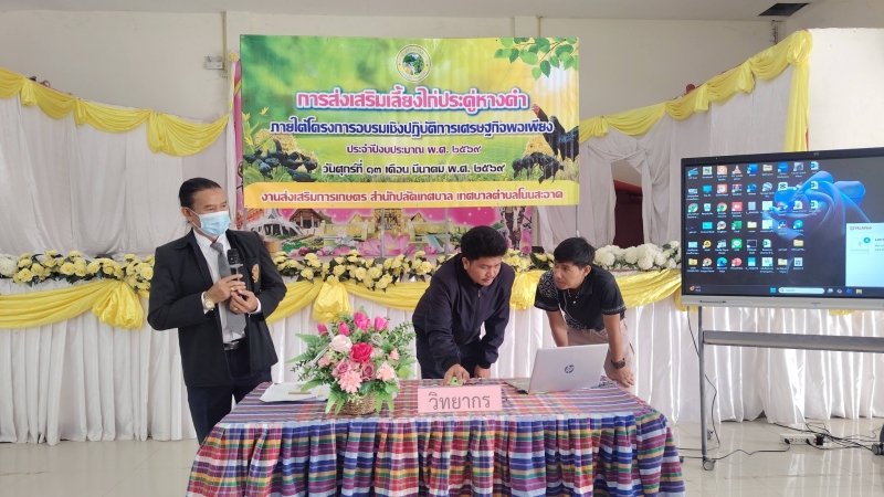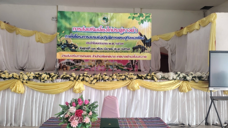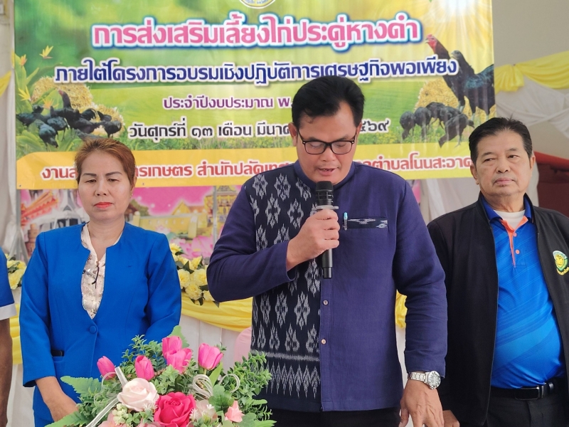 วันที่ 13 มีนาคม 2569 เวลา 09:00 น. งานส่งเสริมการเกษตรเทศบาลตำบลโนนสะอาด จัดโครงการส่งเสริมการเลี้ยงไก่ประดู่หางดำ ภายใต้โครงการอบรมเชิงปฏิบัติการเศรษฐกิจพอเพียง ประจำปีงบประมาณ พ.ศ. 2569 ณ ห้องประชุมเทศบาลตำบลโนนสะอาด นำโดยนายสุริยันต์ มุ่งแสง นายกเทศมนตรีตำบลโนนสะอาด เป็นประธานเปิดโครงการพร้อมทีมผู้บริหาร ข้าราชการและพนักงานเจ้าหน้าที่เข้าร่วม ซึ่งมีกลุ่มเป้าหมายเกษตรกรเขตตำบลโนนสะอาด จำนวน 45 คน